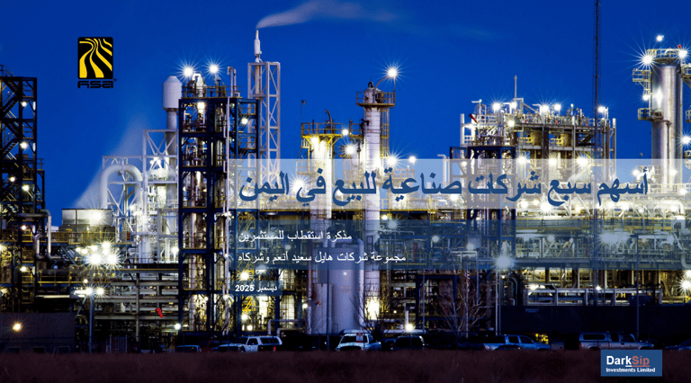 أسهم سبع شركات صناعية موجودة في اليمن معروضة للبيع. تحقق جميع الأسهم المجمعة معاً متوسط عائد موزون تقريبا بنسة 11% سنويًا على النقد المستثمر بعد الضرائب والزكاة على أساس السنوات الماضية من 2019 وحتى 2024 والموثقة بالقوائم المالية المنشورة للشركات.